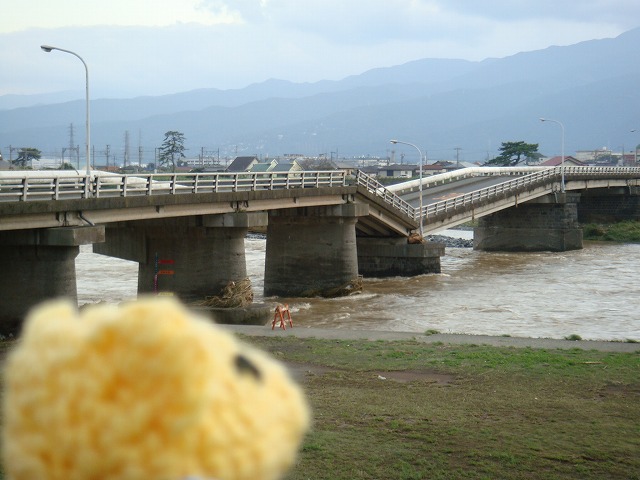 台風9号による川の増水で、落ちてしまった十文字橋。
