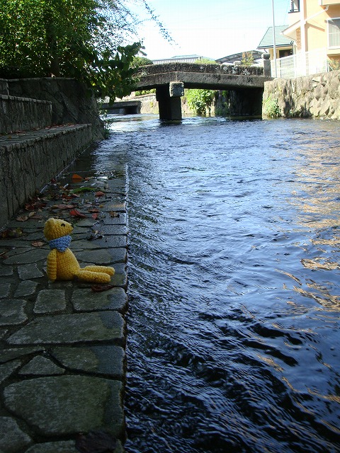暑さを忘れる木陰の水辺。水の勢いも石橋もとてもいい風情。