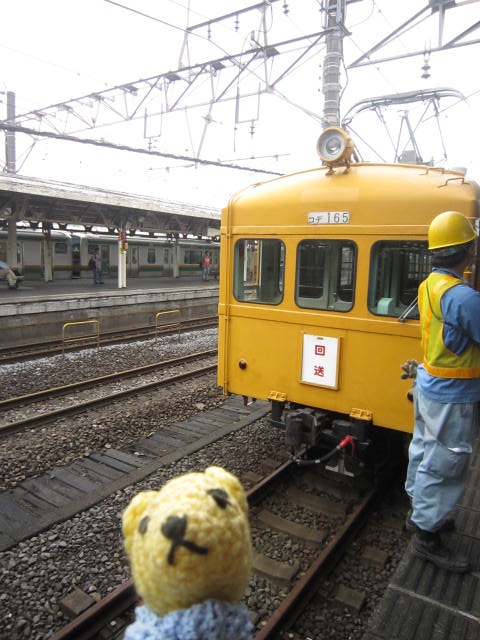 工事用の回送車両らしい。ハートのつり革よりもレアかもね。