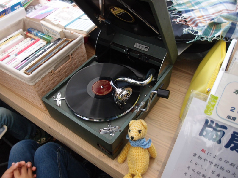 森の読書室の日、本の隣に突如現れた蓄音機。美空ひばりが舞い降りた。