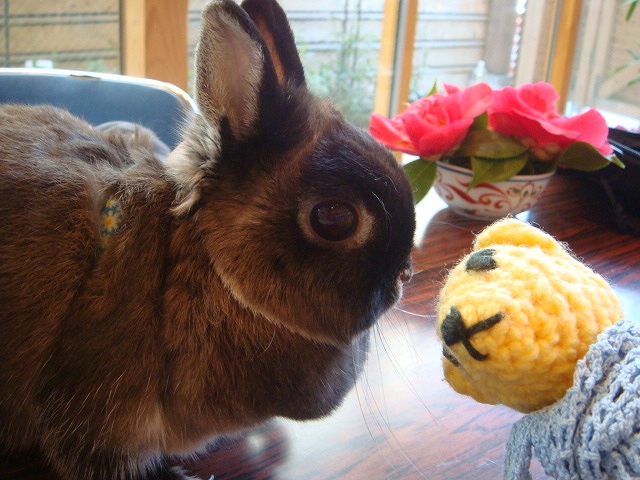 小さくてとってもおとなしいうさぎのサンゴさんと初対面。