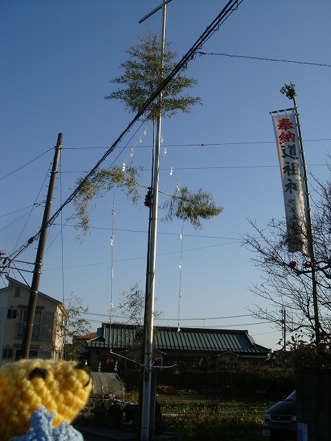 道端の道祖神のところでブラブラしていただるまさんとにらめっこ。