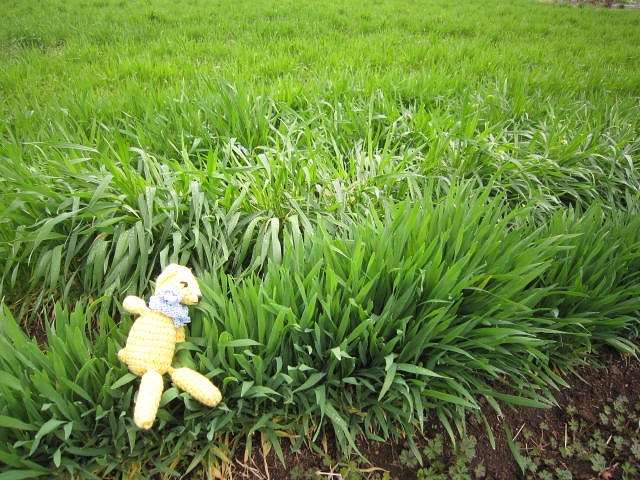 畑の麦たち、しばらく見ないうちにもうこんなにわさわさになっていた。