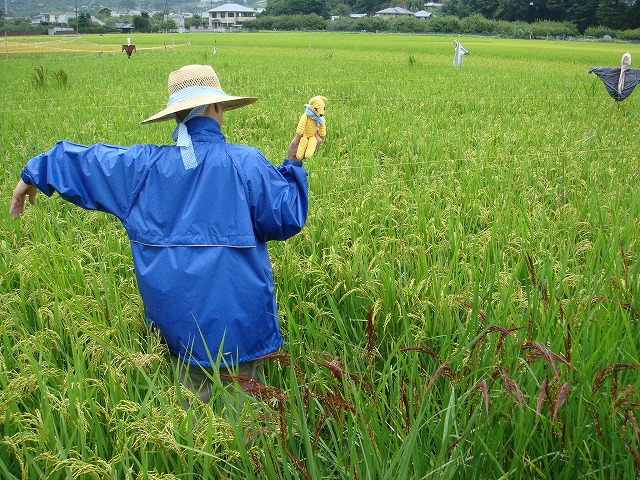 観賞用の古代米、神丹穂(かんにほ)の稲刈りを見学に。