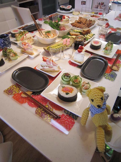 今日はたのしいひなまつり~♪ということでひな茶会。毎度おなじみすすり茶です。この季節はお菓子も色とりどりカラフルなものが多いので、ちょっぴり華やかなお茶会となりました。