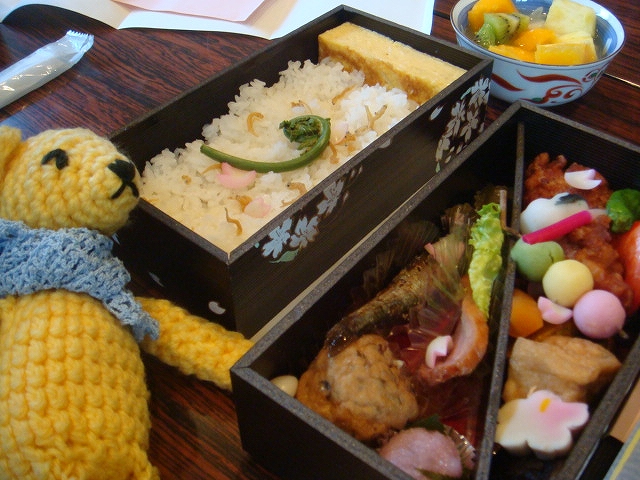 雛の道中のお疲れ様会で美味しいあ・うんのさくらさくら弁当をいただく。