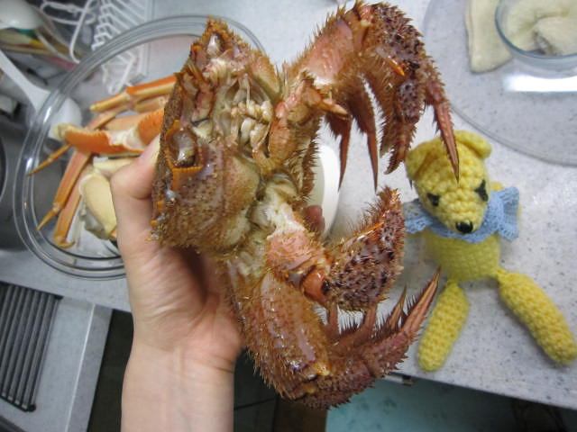 活毛ガニが手に入ったので早速塩茹でしていただく。