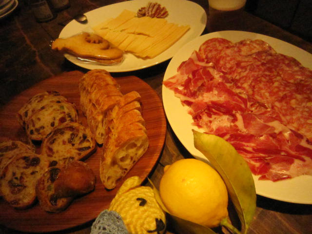 イタリア土産のハムやチーズを食べる会へ。