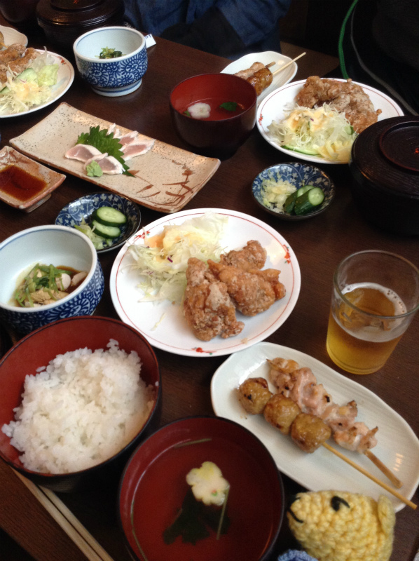 唐揚げ、わさび和え、焼き鳥、つくね全部入った「とり定食」。美味しかったー!
