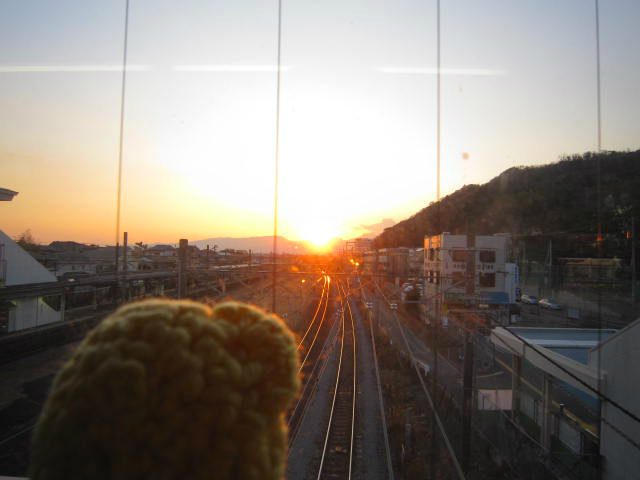 本日は見事に線路が続くその先におひさまは沈んでいきました。