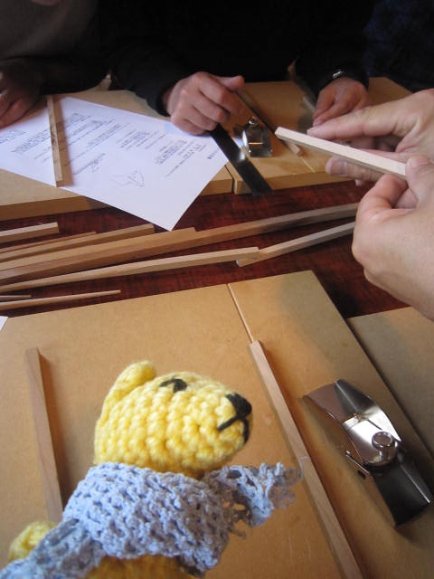 木を選んで、サイズ測って、ノコギリで切って、カンナで削って、ヤスリがけして、蜜蝋塗って、ようやく・・・