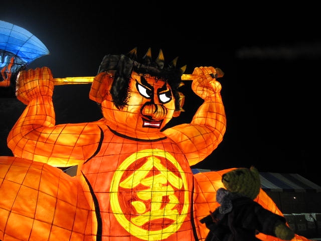 金太郎祭りで出ていた金太郎のねぶた。とんがった前髪と立派な揉み上げ。