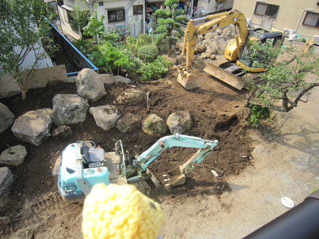 庭の石の配置がみるみる変っていく。植木も場所を移して新しく配置。