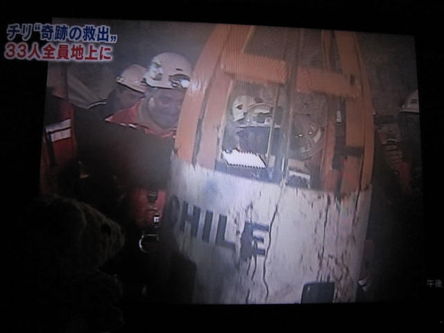 チリ鉱山落盤事故で閉じ込められていた作業員33人、69日ぶりに全員無事救出のニュース。