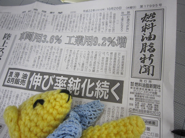 新聞の誤配があり、「燃料油脂新聞」ってのが入っていた。初めてみたー。