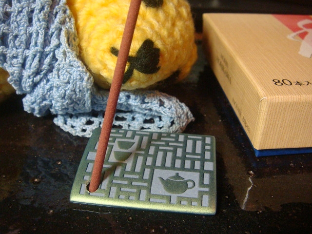 なかなか珍しい茶器柄の香立。