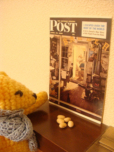 今日のGoogleの題字、ノーマン ロックウェルだった。今日はロックウェルの誕生日らしい。お気に入りの「SHUFFLETON’S BARBER SHOP」のポストカードの前に豆を供えてみた。