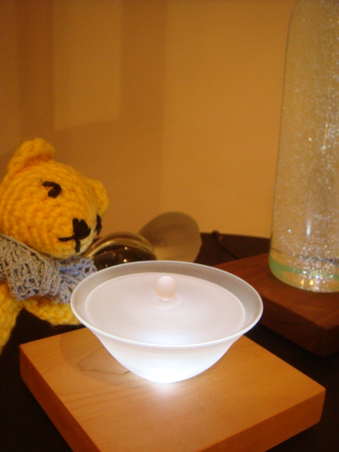 ガラスのすすり茶器セットを受け取りにイパダガラス工房へ。銘はSHIZUKU、とても美しいセット。