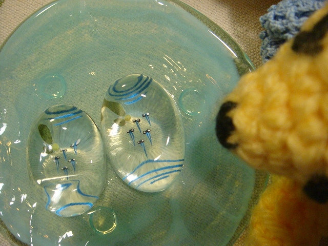 ふと目に付いて先月末に買ったガラスのめだか箸置き。