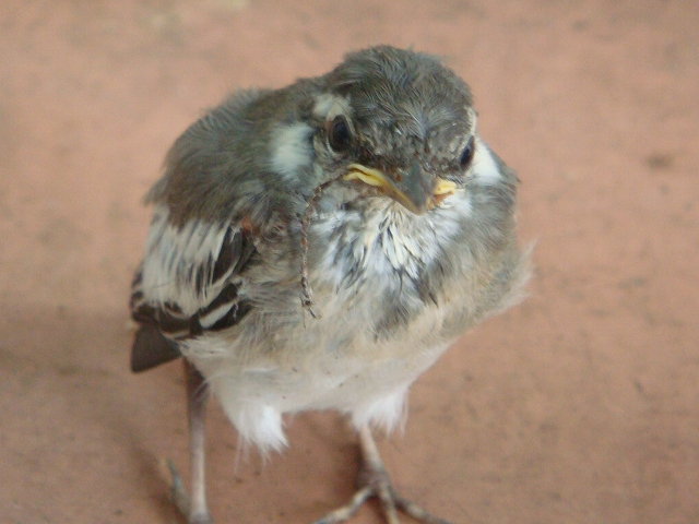 雨にびっしょり塗れた息も絶え絶えのヒナが保護された。
