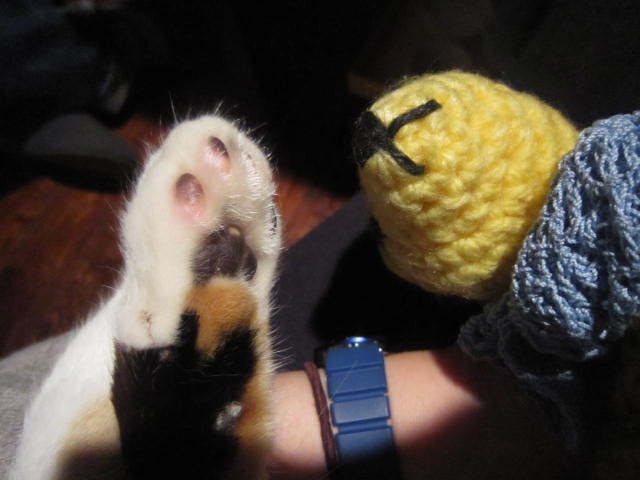 安心しきって膝の上ですぅすぅ眠ってるすきに肉球撮影。たまらにゃい。