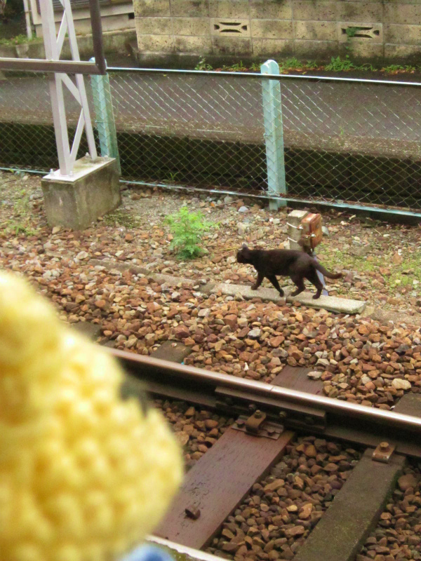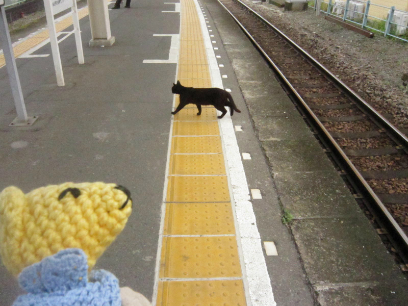 ホームを黒猫が横切った。びっくりした。