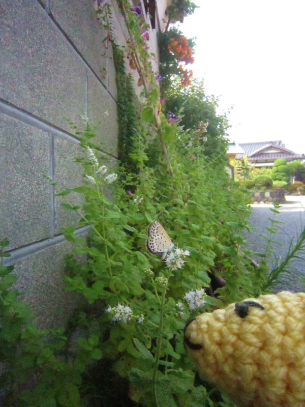 アップルミントの花にひらひらと舞い降りる夏の蝶。