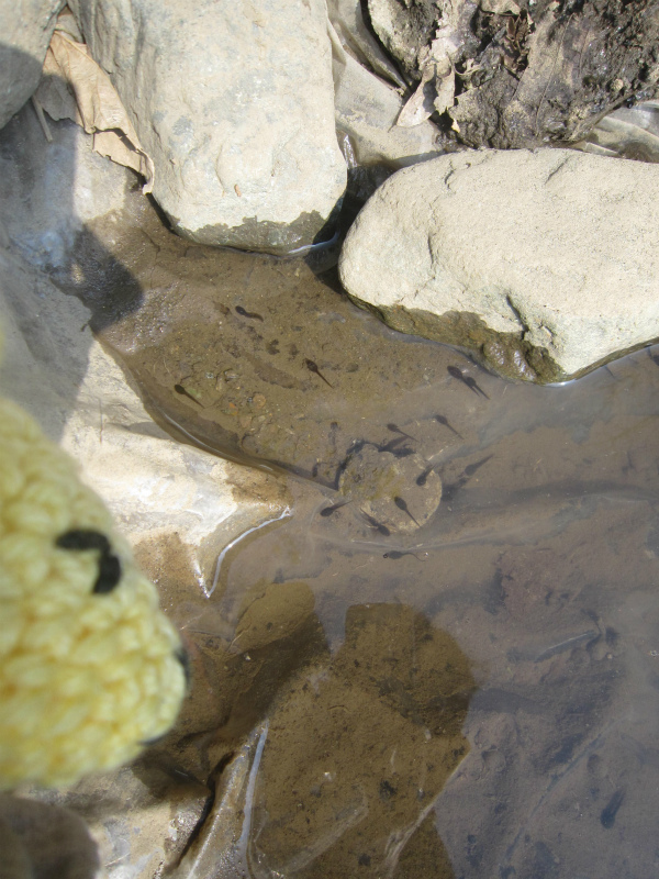 孵化したおたまじゃくしがうじゃうじゃ〜。だいぶ水は干上がってますが・・・。ハラハラ。
