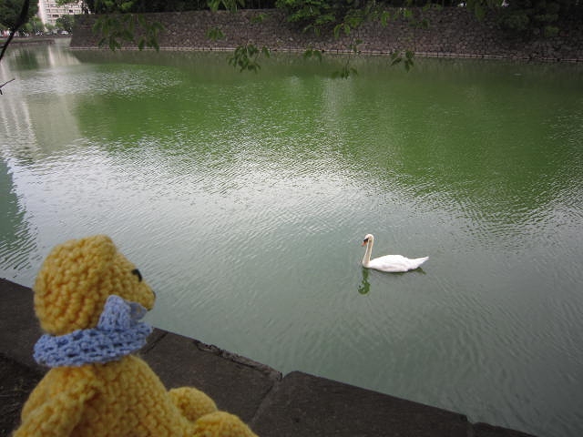 皇居のお堀端を歩いていたら白鳥が一羽すぃーっと近寄って来てびっくりした。