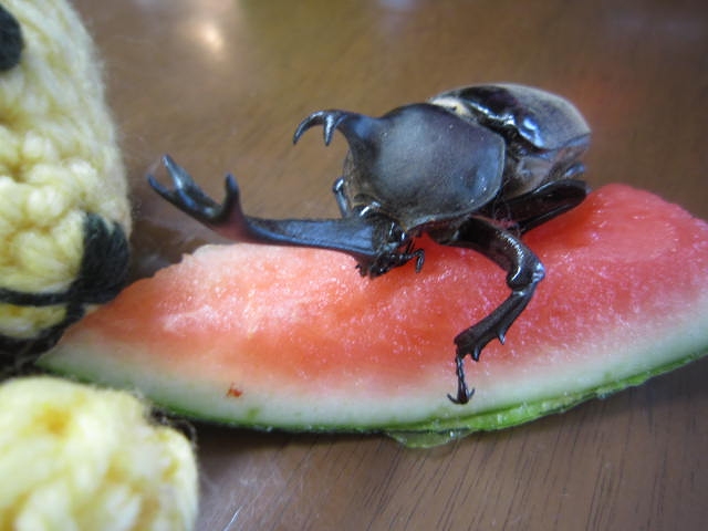 山道で転がっていたというカブトムシ。