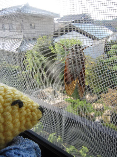 朝、ジッと窓のほうに気配を感じたら、蝉が。
