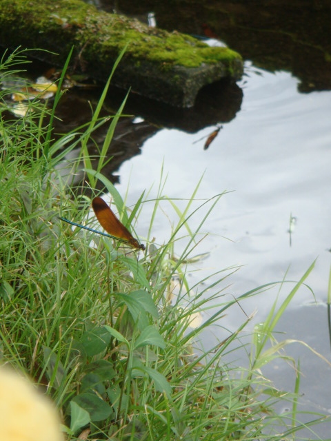 先日水を汲みにいったときに見かけたカワトンボ。涼しげできれいだった。
