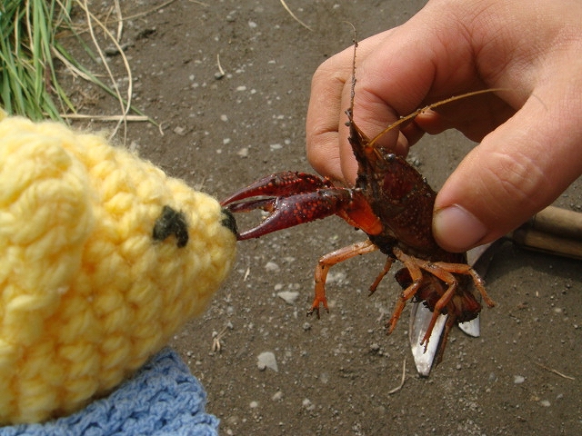 田んぼの用水路でザリガニ発見。