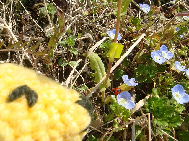 オオイヌノフグリの青がきれいだなー、と思って見ていたらぽちっと赤い色。