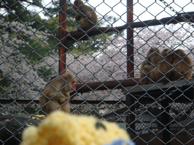 先月末の寒い日にくっつきあってふるえていた小田原城の猿たち。