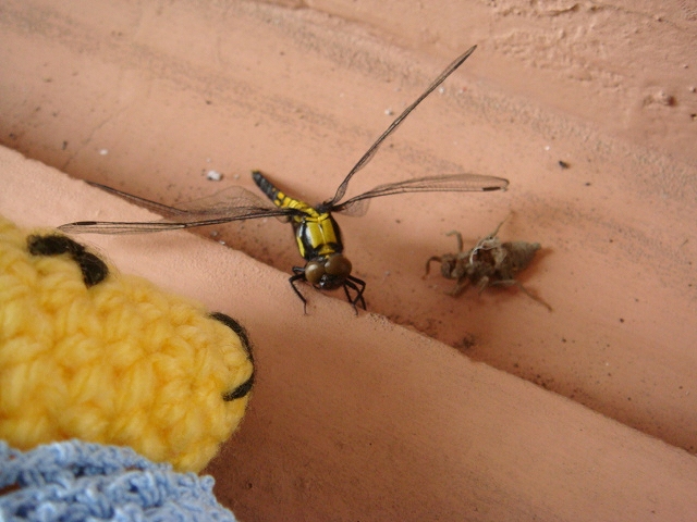 お昼すぎ、駐車場の脇で羽化したてっぽいトンボ発見。