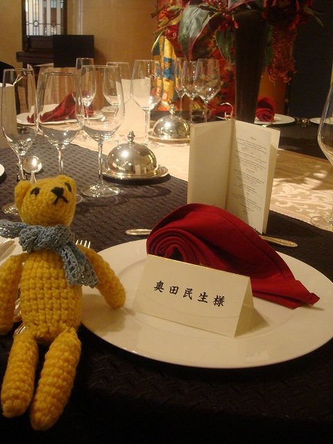 ヒルトンでたみおさんの席発見!パーティープランのセッティングディスプレイで、ですが。ちなみに右隣は松田聖子様、左隣は岡田准一様でございました。(笑)