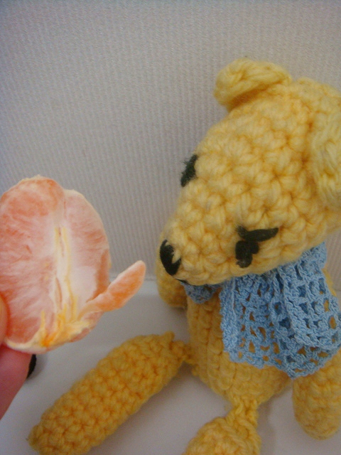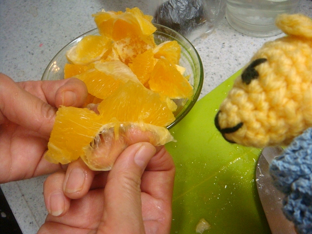 ちょっと変形したみかんをむいて食べてたら、こんなヒトがでてきました。