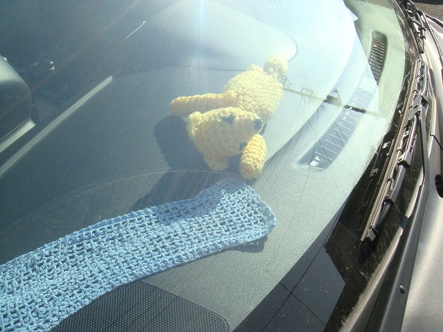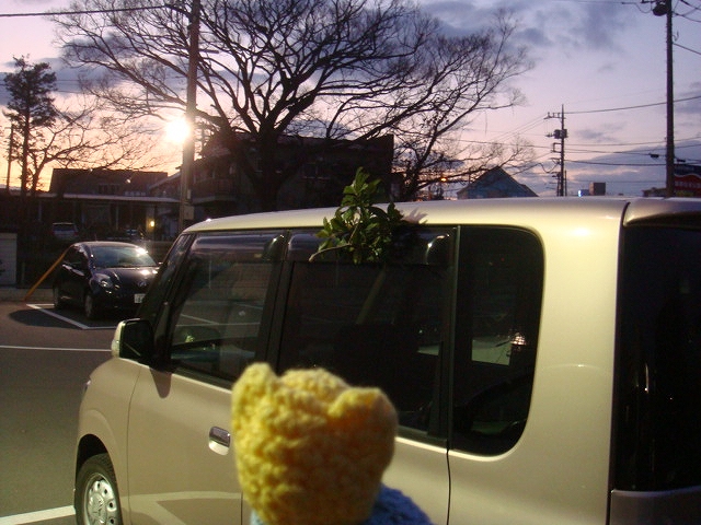駐車場で車とめてふと隣の車を見たら、後部ドアになぜか枝がはさまっていた。