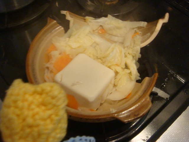 お昼に鍋焼きうどんをと思い野菜や豆腐を煮てたら突然鍋が割れた。