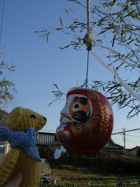 道端の道祖神のところでブラブラしていただるまさんとにらめっこ。