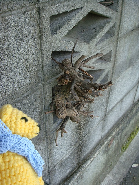 道を歩いていたら、ブロック塀の隙間から脱走中の精霊と遭遇。