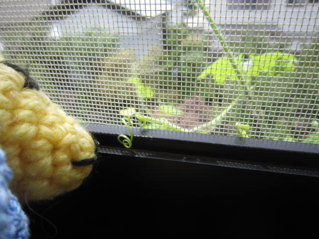 まだまだ伸びるよ!と網戸にもからまってまいりました。