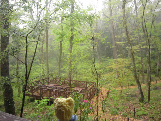 雨に煙る新緑の森。