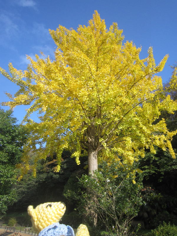 お昼にはすっかり晴れ上がり、イチョウの木は金色に輝いてました。