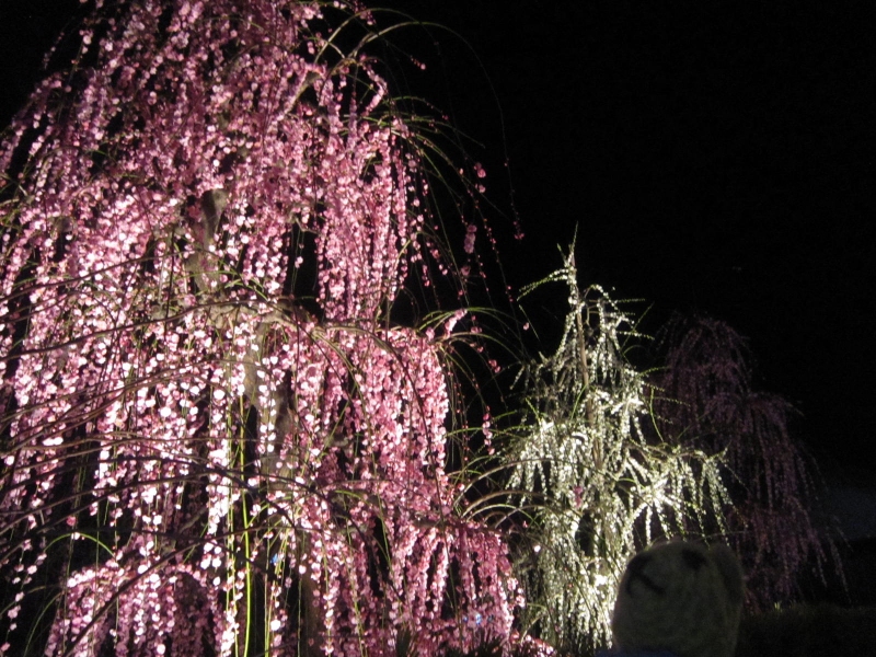 毎年恒例のライトアップの枝垂れ梅。