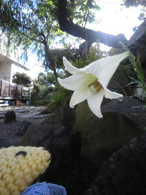 真っ白い鉄砲百合が咲いてた。