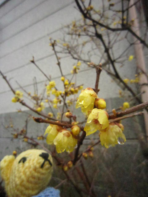 そのなかに咲く蝋梅。美しい黄色い花弁。