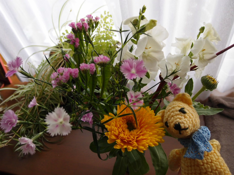キンセンカ、ナデシコ、スターチス、グラジオラス。