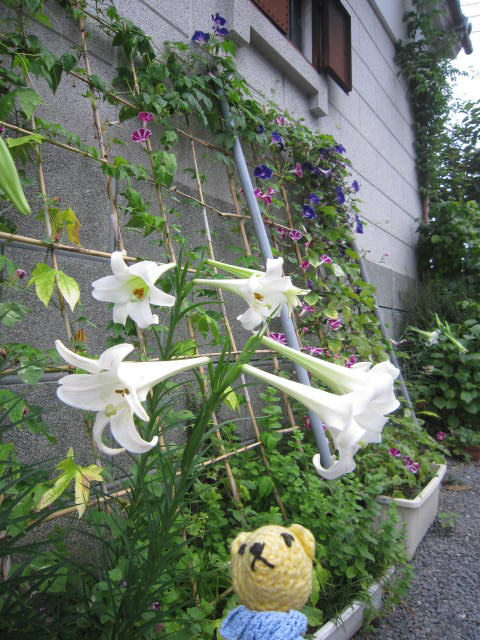 百合と朝顔、ただいま最盛期。